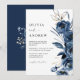 Simple Elegant Navy Blue Boho Floral Wedding Inbjudningar