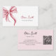 Simple Elegant Typography Pink Bow QR Code Visitkort