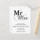 Svart och vit "Mr&Mrs"-bröllopsinbjudning för Elegant: Spara vykortsknappen Klicka på anpassningsknappen för att anpassa designen genom att välja den bakgrund du vill ha och till och med lägga till din egen text.