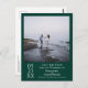 Det här framväxande vykortet för färgad av grönt är perfekten för att informera dina vänner och familj om ditt kommande bröllop. Med en enkel minimalistisk design med sin konst, moderna och elegant, inklusive ditt foto med vit text som innehåller all viktig information.