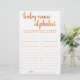 "ABC Baby Namn Game", en enkel babydusch eller gender, visar spelkortet för tävling i party med ett roligt, avslappnad handskript. Den klassiska designen innehåller ett modernt hanterat textöverlägg för citattecken. För andra färg eller matchande produkter, gå till butiken JustFharryn Zazzle eller kontakta designern, c/o Fharryn@yahoo.com Alla höger reserverade. #bohochic #zazzlemade