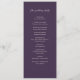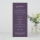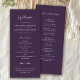 Detta moderna minimalistiska bröllopsprogram erbjuder en enkel ren utformning. Den vita texten om mörkens bakgrund för lila fungerar perfekt under hösten bröllop. Det här programmet ger plats för din ceremoniorder i bröllop, ett personligt tack till kort och en lista över bröllopsfesten på motsatt sida.