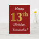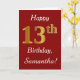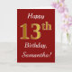 Den här enkla födelsedagskortsdesignen innehåller meddelandet "Lycklig 13:e födelsedag", där "13:e" har ett faux-guld-liknande utseende. Den har också ett eget namn och en röd bakgrund för mörken. Det skulle kunna ges till någon som firar sin trettonde födelsedag.