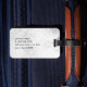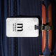 Elegant anpassadets blå bagagetapp med fet monogram.