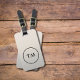 Elegant anpassade grått bagagemärke med svart / fet monogram och faux silver bakgrund.
