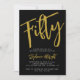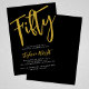 Fiftieth gold script simple black and white modern 50th birthday invitation that you can personalize and send out for your 50th birthday party celebration. The word "Fifty" is set using popular typography font. The text colors can be changed using the edit menu.