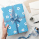 Pattern of small white flowers evenly spaced on a bright blue background. The design is simple and playful, creating a cheerful and lighthearted tone.