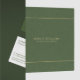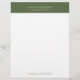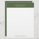 The elegant, simple, and minimalistic letterhead design features customizable gold typography on a forest green linen texture imitation.