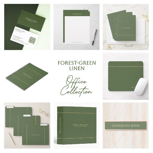 Simple Forest Green Linen Gold Typography Brevhuvud