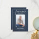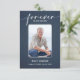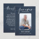 A simple memorial funeral flat thank you card features "Forever in our hearts" with your loved one's photo, name and birth-death dates on the front and your thank you message on the back on a blue jean denim background.