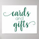 Minimalistiskt blomstrande kalligrafiskylt-vågrät "Cards & Gifts" dusch, party eller bord-mottagningsskylt med en roligt, avslappnad handskript. Den klassiska designen innehåller ett modernt hanterat textöverlägg för citattecken. Det vackra teckensnittet med anpassadets bakgrund färg gör det enkelt att passa alla teman. För andra färg eller matchande produkter, gå till butiken JustFharryn Zazzle eller kontakta designern, c/o fharryn@yahoo.com Alla höger reserverade. #zazzlemade