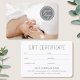 Create a stylish and professional Gift Certificate for your business. This editable design features your company logo and a photo to showcase your products or services. It features simple, modern typography and a minimalist aesthetic. Personalize the template with your certificate details and contact information. Space is provided for handwritten details such as recipient's name, gift giver, value, issue date, expiry date, and voucher code. It offers fully customizable text to fit your unique business needs. This elegant design is ideal for various businesses, including makeup artists, hair and beauty salons, boutiques, small businesses and many others. Printed colors: white and dark gray, or customize the color with the design tool.