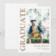 A simple classic script "graduate" in modern gold script and complements the photo of your grad. Personalize this simple card with photo, name, school and date for high school and college graduates. Easy to customize. Congratulations!