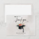 A clean and modern graduation party thank you card. The front features an elegant abstract watercolor background. Soft pale gray and beige tones add a gentle touch, creating a polished and stylish card for show you appreciation to celebrating this special milestone with you. A beautiful watercolor illustration of a student cap with black tassel, pretty flowers and green leaves.