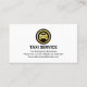 Cover features a white and a green colored layer design with a gold taxi speech bubble logo you can use. The business name "TAXI" (which you can change) blends in with the green layer. Just below this is the contact details with your prestigious name near the base of the card.