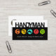 Just below this is an array of colorful handyman tools icon that can represent some of the work you offer e.g. the hand drill-measuring tape can represent home repairs-renovation etc; Their usage is left to your own interpretation. Near the base lies a slogan caption you can change.