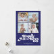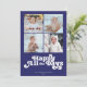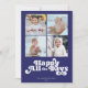 Dessa 5 x 7-tums platta Hanukkah-hälsningskort har en minimalistisk utformning med hälsning, "Lycklig Alla dagar", i vit brev på royalets blå bakgrund med platshållare för fyra (4) av dina favoritfoton, familjens namn och årtalet.