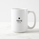 Custom Mom simple classic modern minimalist red heart coffee cup for your mother or a new mom - with personalized year established. Keep it simple or make your own unique changes to the heart or background color, typography, names, dates.