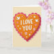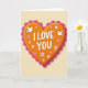This greeting card shows a large stylized heart in pumpkin-orange that looks a bit like frosted icing. A fuchsia-pink scalloped border surrounds the heart, giving it a layered look and a soft, rounded edge. In the center, the words “I LOVE YOU” appear in white, thick uppercase letters that are easy to read. Two white doves sit on either side of the message, facing inward with calm expressions, which adds a gentle, caring feel. Around the heart you’ll notice small pink-and-white flowers, tiny stars, and scattered dots like confetti, all floating on a pale beige background. The light shading and small shadows make the heart and border feel slightly raised without being too busy. It feels meaningful to give because the simple message and peaceful doves say “I care about you” in a steady, honest way 🥰❤️. Hope it helps you share your Valentine’s Day feelings with someone you love.