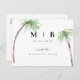 Enkelt Tropical Handflatan Träd. Black Initialer. spara datumet. Bröllop. Utslag. Vykort.