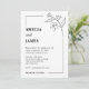 Den här sofistikerade svarta och vita bröllopsinbjudan innehåller en handillustrerad gren av jasmine överst. Här nedan visas händelseinformationen elegant i ett modernt skript och klassiskt teckensnitt. Utformningen är ren och lyxig, skapar perfekten för ett modernt klassiskt bröllop.