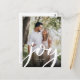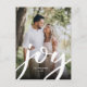 Ett enkelt och elegant helgdag-fotokort innehåller ditt favoritfoto och "joy" överlagrad i ett vitt handskript. Anpassa med namn eller namn och året och lägg till ditt unika personliga budskap på baksidan.