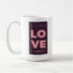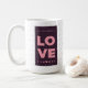 Det här snyggt kaffet mugg har en charmerande hjärtformad mönster som bakgrund och kompletterar på ett vackert sätt det hjärtliga budskapet: "Allt du behöver är kärlek." Den här romantiska designen tillför en aning värme och tillgivenhet till varje sipp och skapar den som perfekt för någon speciell.