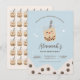Minimalistiskt mjölk-te, boba/bubble, tog upp personligens födelsedag, med söt kawaii bubble-mjölk te-klippbild och enkel modern typografi. Kommer med fram- och bakåtdesign. Anpassa med information om namn, ålder och party. Perfekt för enmajs och boba, temat party.