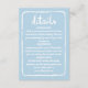 Höj alla detaljer i bröllop med våra enkla, ljusblå, vismliknande ram lodrät-höljeskort! Designade för att komplettera vår fantastiska samling, tillför dessa charmerande tillägg en aning personlighet och värme till din kontorssvit. Med samma lekande, handillustrerade vita vattenfärgen ram och manustypografi, på blå bakgrund, binder våra djurutrymmeskort sömlöst ihop ditt bröllop-tema och skapar en sammanhängande och fängslande upplevelse för dina gäster. Välj andra kontorsprogram med annan ramar från samma samling för att lägga till ännu mer spelbarhet. Oavsett om du ger ytterligare information om logi, anvisningar eller bara delar ett hjärtligt meddelande, ser våra nya blå vita inkapslingskort till att alla sidor av firande är fyllda med samma vismliknande anda som gör din kärlek-historia unik. Gå med oss förverkliga er vision från bröllop, en underbar detalj åt gången. Låt våra visitkort vara den avslutande beröring som lämnar ett varaktigt intryck på dina gäster, som utlöser upprördhet och förväntan inför den magiska dagen framöver.