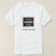 Give your team a polished, professional look with this custom branded business t-shirt. An ideal promotional tool for small businesses, this shirt features a logo prominently placed on the front the shirt, with an optional text area below. Upload your company’s logo, add contact details, a slogan or message, and select a shirt color that matches your brand identity. This modern template makes it quick and easy to create your own branded t-shirts for staff uniforms or promotional apparel. Click ‘Personalize’ to get started!