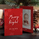 Modern minimalist Christmas card features stylish merry & bright script and snowflakes, simple and elegant.