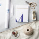 simple minimal monogram personalized name blue ret presentpapper
