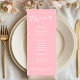Display your meal choices beautifully with this simple pink menu sign, perfect for weddings, bridal showers, and baptisms. Designed with a clean, minimalist aesthetic and soft pink tones, it complements modern, romantic, and pastel celebrations while keeping your event décor elegant and cohesive.