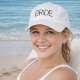 White baseball cap with bold black "BRIDE" text, perfect for bachelorette parties, bridal showers, honeymoon, or wedding day prep. A stylish and fun bridal accessory.