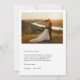 Det här enkla moderna fototackkortet i Bröllop har en romantisk utomhusmiljö med paret omfamnat i ett fält av blommor på framsidan och ett solnedgångslandskap på baksidan. Utformningen är elegant och personlig och kombinerar vacker fotografi med en enkel, ren typografisk layout