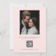 Ett enkelt och modernt tillkännagivande från bröllop spara datum vid rosan. Rubriken "spara datumet" står i ett svart, modernt, handskrivet teckensnitt. På motsatt sida lägger du till din foto- och bröllop-webbplats, med QR-kod.