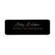 Enkel, modern, minimalistisk och mycket elegant guld-manusattypografi på svarta returetiketter, Chic, anpassningsbar och personlig med ditt namn och adress.