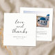 Say thank you in a simple, heartfelt way. This wedding card has 'Love & Thanks' written in pretty script and lets you add your favorite photo. There’s space on the back for your own message. It’s a nice way to remember your special day with friends and family.