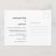 Den här moderna bröllop-vykortsinbjudan har en minimalistisk och chic utformning som kombinerar en ren vit bakgrund med en slimmad svart typografi för en ny, contemporary känsla. Framsidan visar en enkel och ändå snyggt layout för händelseinformation, accentuerad med ett rymligt format som är elegant. Baksidan belyser ett romantiskt foto av paret som skapar en varm och intim atmosfär. Perfekt för modernt, stadsnärt eller minimalistiskt bröllop, denna utformning blandar lätt sofistikering med personlig charm, skapar den perfekt för par som värdesätter enkelhet och stil.