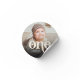 Simple Modern Minimalist Boho 1:a födelsedagsfoto Runt Klistermärke