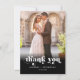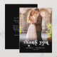 This simple, modern minimalist thank you wedding card features a modern serif font, and add your own photo. Add your first names in this elegant template along with the date and location for a simple, classy invitation. Add a thank you message on the back.