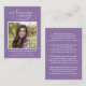 These purple custom personalized photo In Loving Memory poem funeral cards are simple and are easily customized with a favorite photo of your loved one. The poem on the back is beautiful and will help friends and loved ones through their bereavement and bring comfort and solace to those who receive them. Order our Simple Modern Photo Funeral Cards today and honor the memory of your loved one in a meaningful and personalized way.