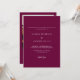 Bröllopbjudan har en modern minimalistisk design med vit skriptkalligrafi på elegantens burgundbakgrund. Du kan ladda upp fotot och enkelt redigera texten och teckensnittet med hjälp av verktyg. Visa andra produkter från den här samlingen.