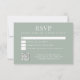 Create your own custom wedding RSVP cards for your guests. Simple modern sage green design with elegant typography and scannable QR code to your website.