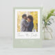 Gör ett ihållande första intryck med detta moderna bröllop spara datum-kort, designat för par som rengör elegant stil med en personlig känsla. Framsidan har anpassadets foto som ramats in av ett vitt gräns och som ställs in mot en mjuk grönt bakgrund, ge det ett varmt men förfinat utseende. Lägg till namn, bröllop-datum och plats i en rolig, minimalistisk text för ett vackert meddelande. I baksidan finns utrymme för ytterligare information om anpassadet. skapar det enkelt att allt som dina gäster behöver veta. En perfekt som blandar enkelhet, romantik och tidlös design.
