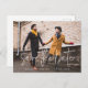 Framsidan av detta enkla, moderna vykort i Spara datum meddelande har ett vitt skript som täcker över ett fullt-foto av paret, med namn och data nedan i ett vitt sans serif-teckensnitt. Anpassa baksidan med namn, bröllop-datum, webbadress och annan information, tillsammans med din returadress.