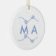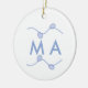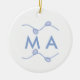 Simple monogram add your name letter blue leaf julgransprydnad keramik