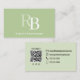 Simple Monogram Green QR Code | Connect with Me Visitkort