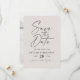 Simple Off-White Gardenia Ivory with Script Photo Wedding Save The Date Cards. This modern yet classic design is minimalistic and elegant with a simple solid color and beautiful calligraphy signature script text. Shown in the new colorway. Also features an optional custom couple's photograph on the back side. Or simply hide the layer to have a solid background instead.