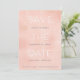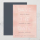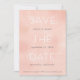 Modern och enkel spara datumkortet med funktioner som sans serif och italic lettering i skarp vit text, med namn, datum och plats för bröllop som är sammanflätade med "spara datumet". En vattenfärg som tvättar bakgrund i blekens peachy rosa tillför mjuk romantisk charm. Anpassa med din inbjudningsinformation och/eller bröllop webbplats längs grund.